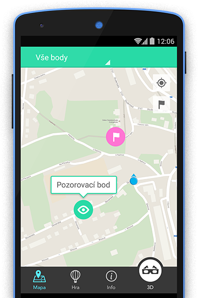 Mapa v aplikaci Virtuální Aš zobrazuje pozici jednotlivých pozorovacích bodů pro prohlížení virtuálních historických objektů a dále při hraní Hry postupně odkrývá její jednotlivá stanoviště, přes která herní okruhy procházejí. Po kliknutí na bod v mapě se zobrazí jeho detail s dalšími infomacemi. Pomocí mapy se jednoduše dostanete na místo, který chcete pozorovat a jehož historie vás zajímá.